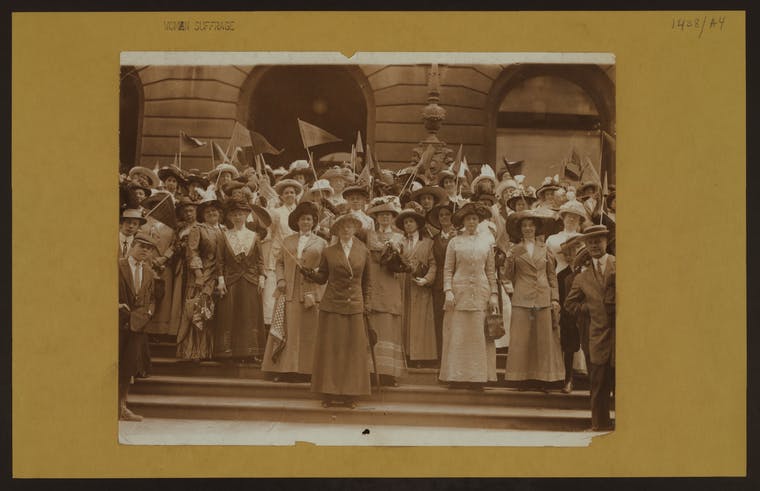 A group of suffragettes at a convention parade in support of extending the vote to women. Photograph by Burke and Atwell, courtesy of the New York Public Library Digital Collections.