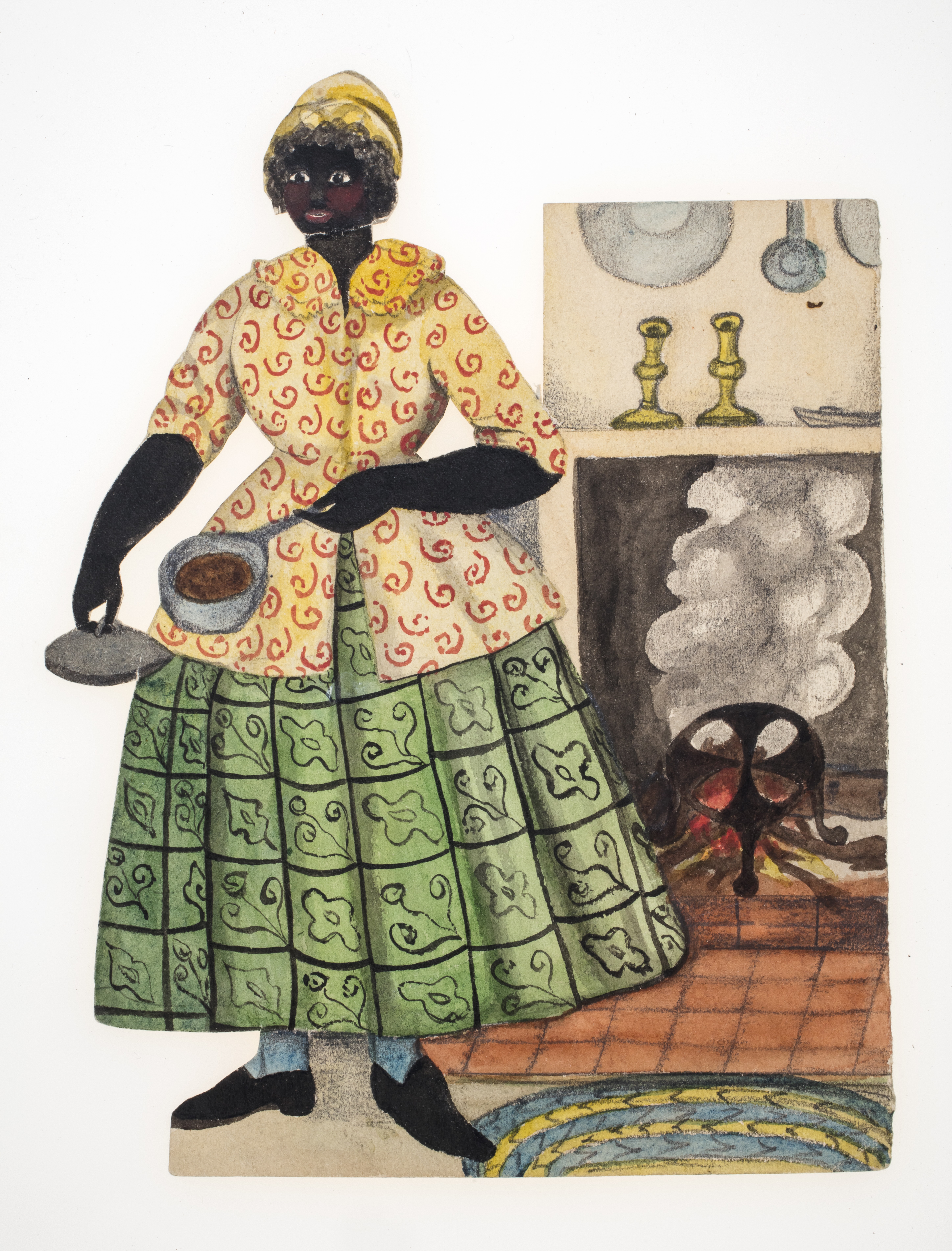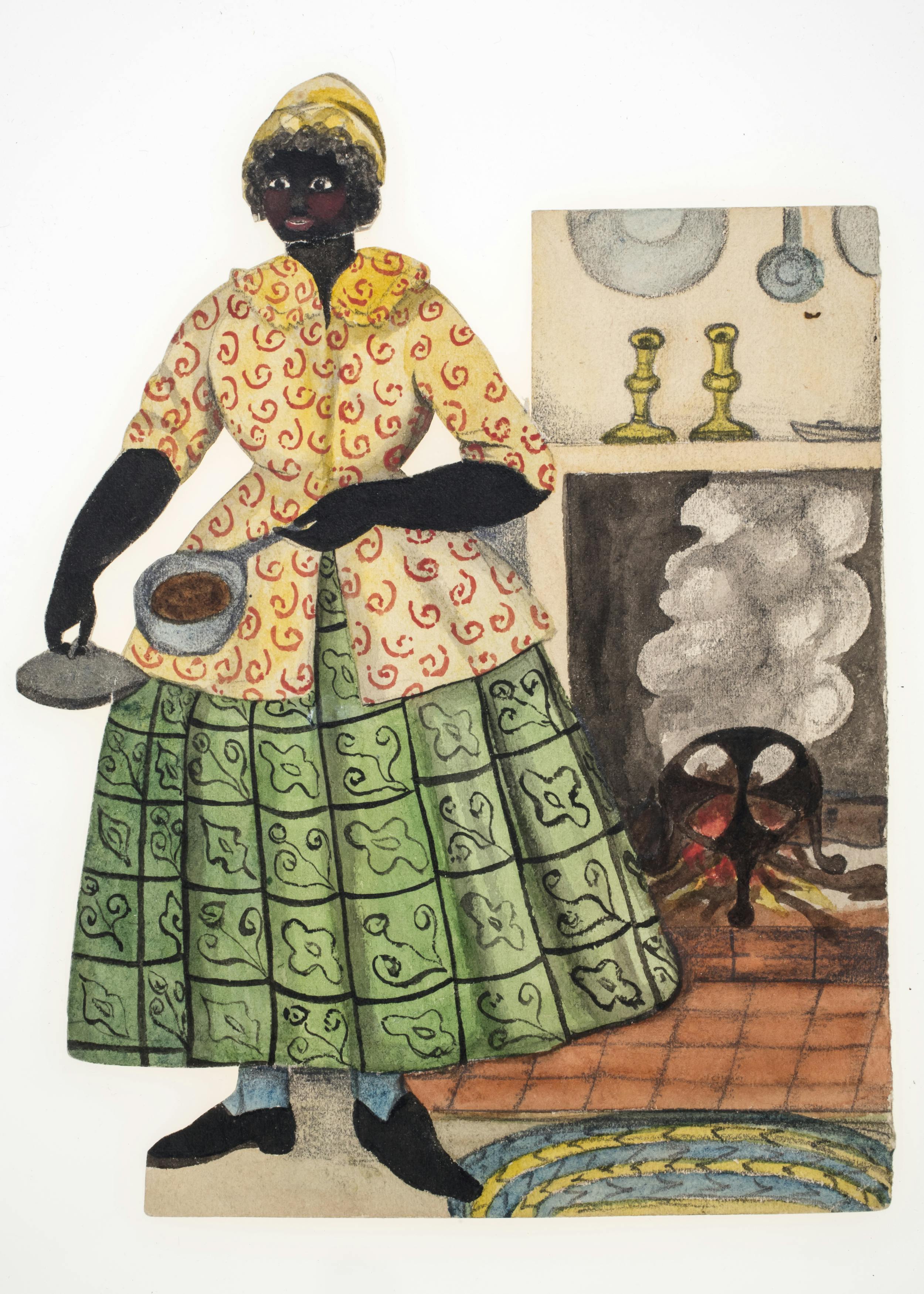 In addition to depicting certain kinds of work as "women's work," 19th- and early 20th-century toys often added a racial dimension: Black women were most commonly represented as maids or cooks. This stereotype permeated American visual and popular culture throughout the 1800s and into the 1900s, persisting well after the abolition of slavery.