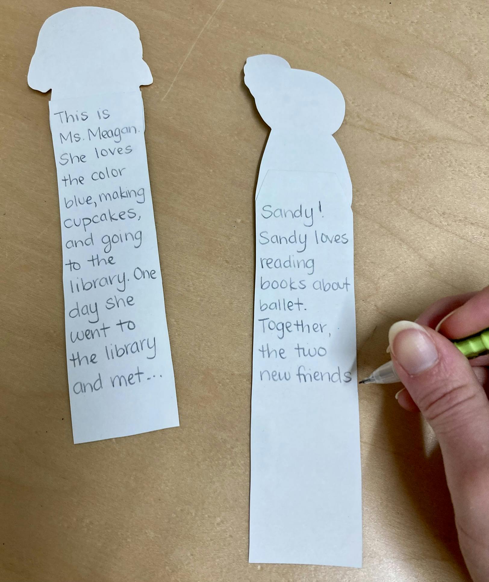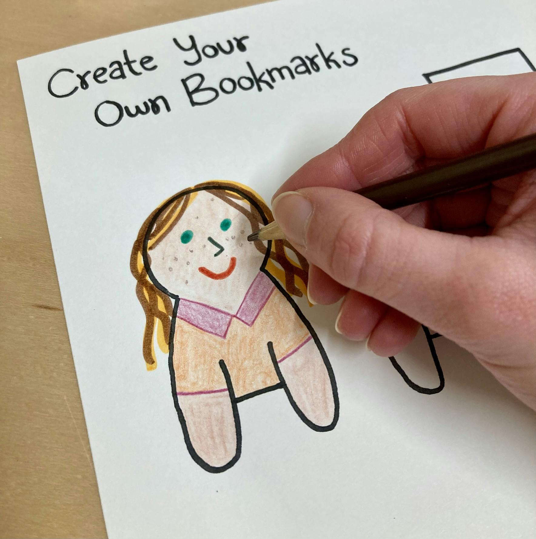 On the back of your bookmarks you can write about your characters. How old are they? What foods do they like? Do they have superpowers? Where do they live? What happens when your two characters meet?