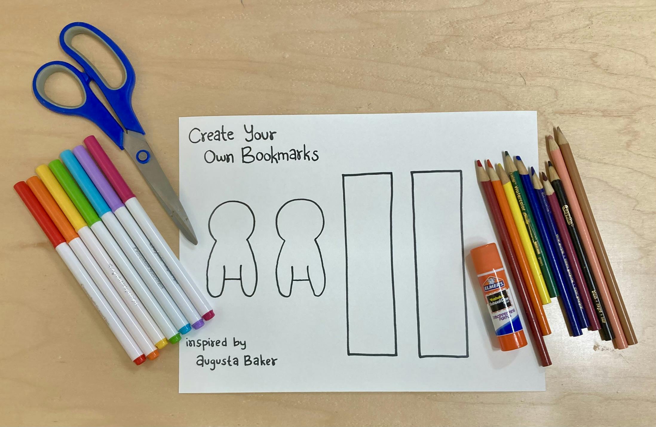 Happy Women’s History Month! Our bookmark craft today is inspired by Augusta Braxton Baker: storyteller, librarian, listener, teacher, and the woman who in 1961 became the first Black coordinator of children’s services for the New York Public Library.