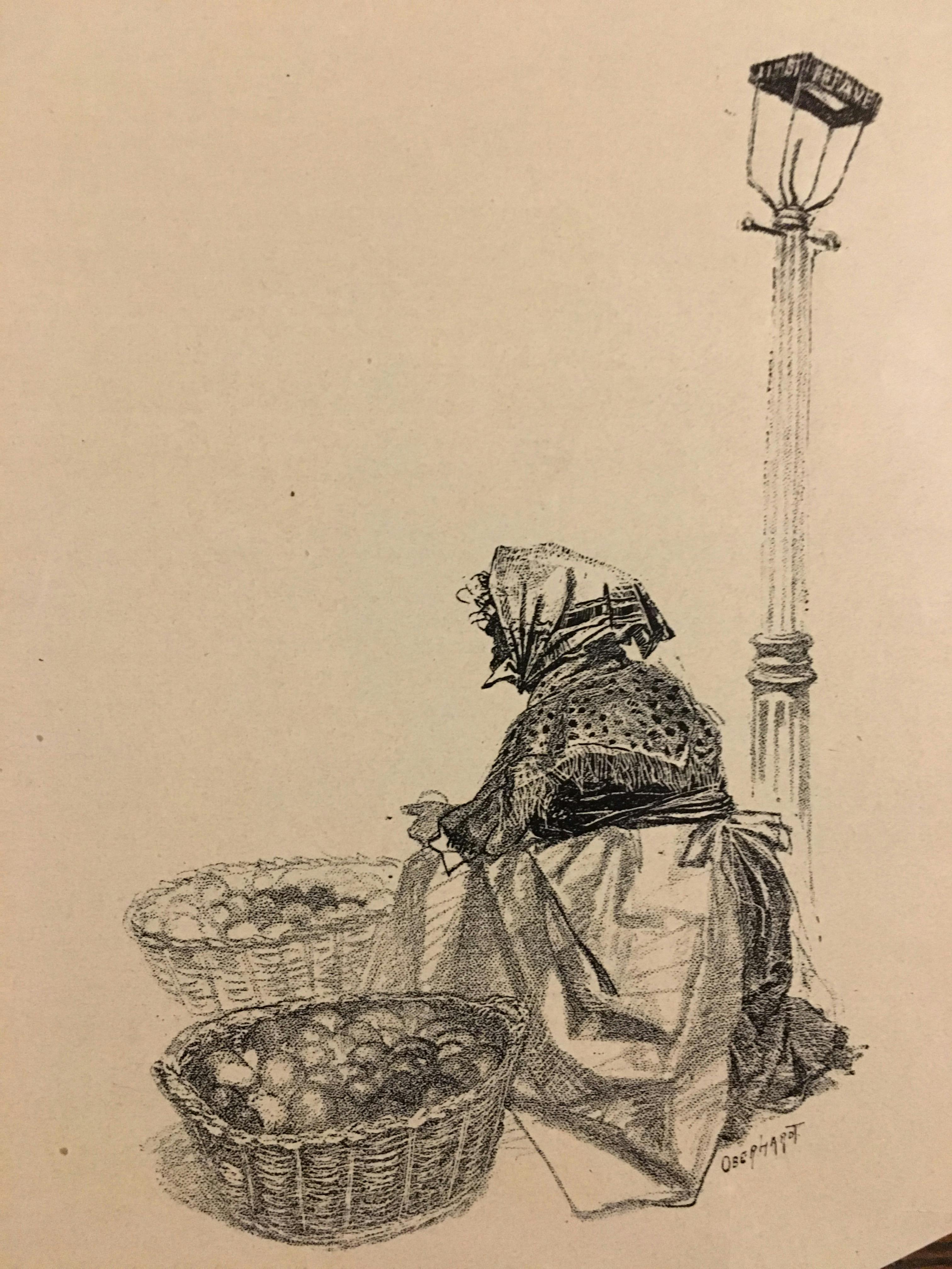 Right: William Oberhardt (1882–1958), artist and lithographer. Portrait of orange peddler, The East Side, March 1912.
