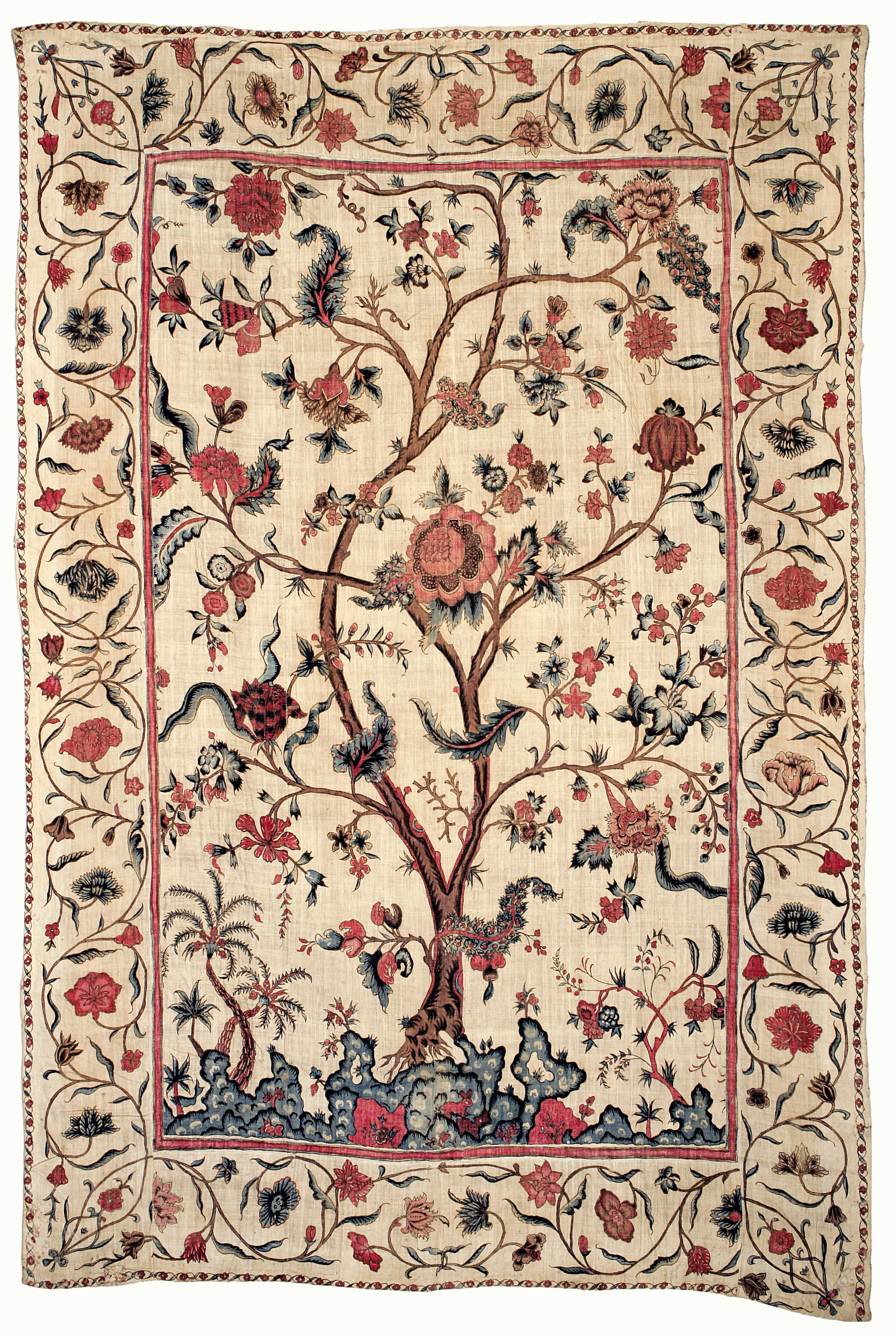 Unidentified maker. Bedcover or wall hanging (palampore), ca. 1720–40. India. Cotton, linen, paint. The New York Historical, Gift of Mrs. J. Insley Blair, 1938.1