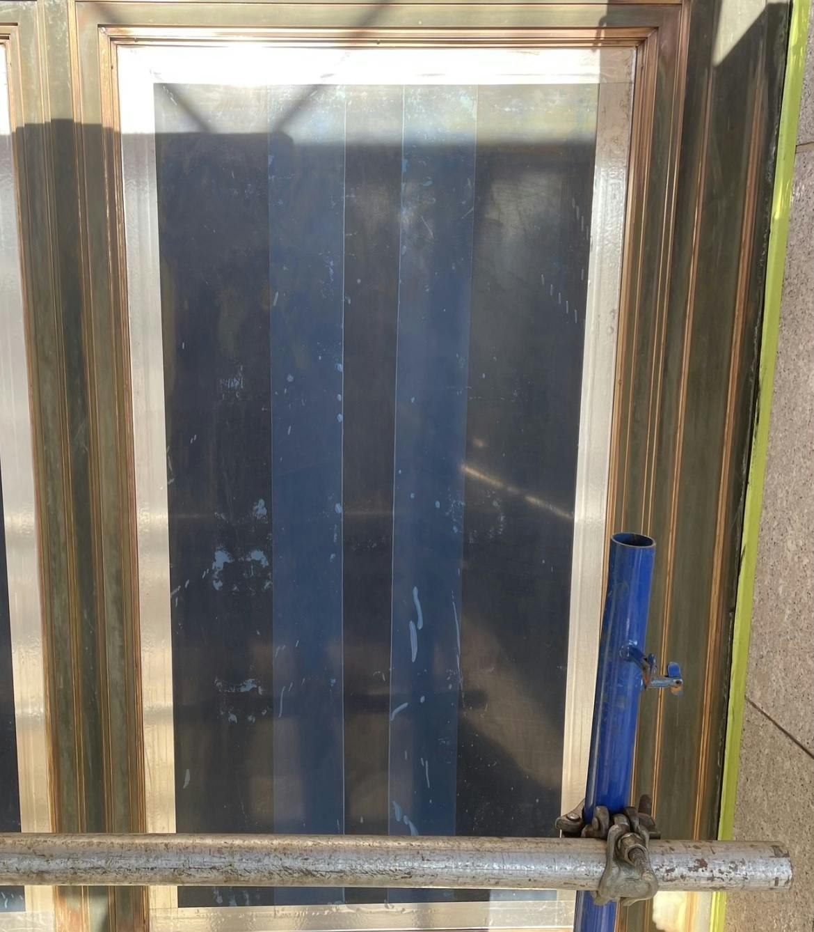 (Left) A bronze window sash before restoration; (right) and one that's been restored and reinstalled.