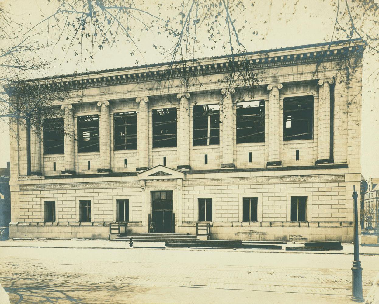 (Left) The New-York Historical Society building under construction in 1906; (right) During the construction of the new wings in 1937.
