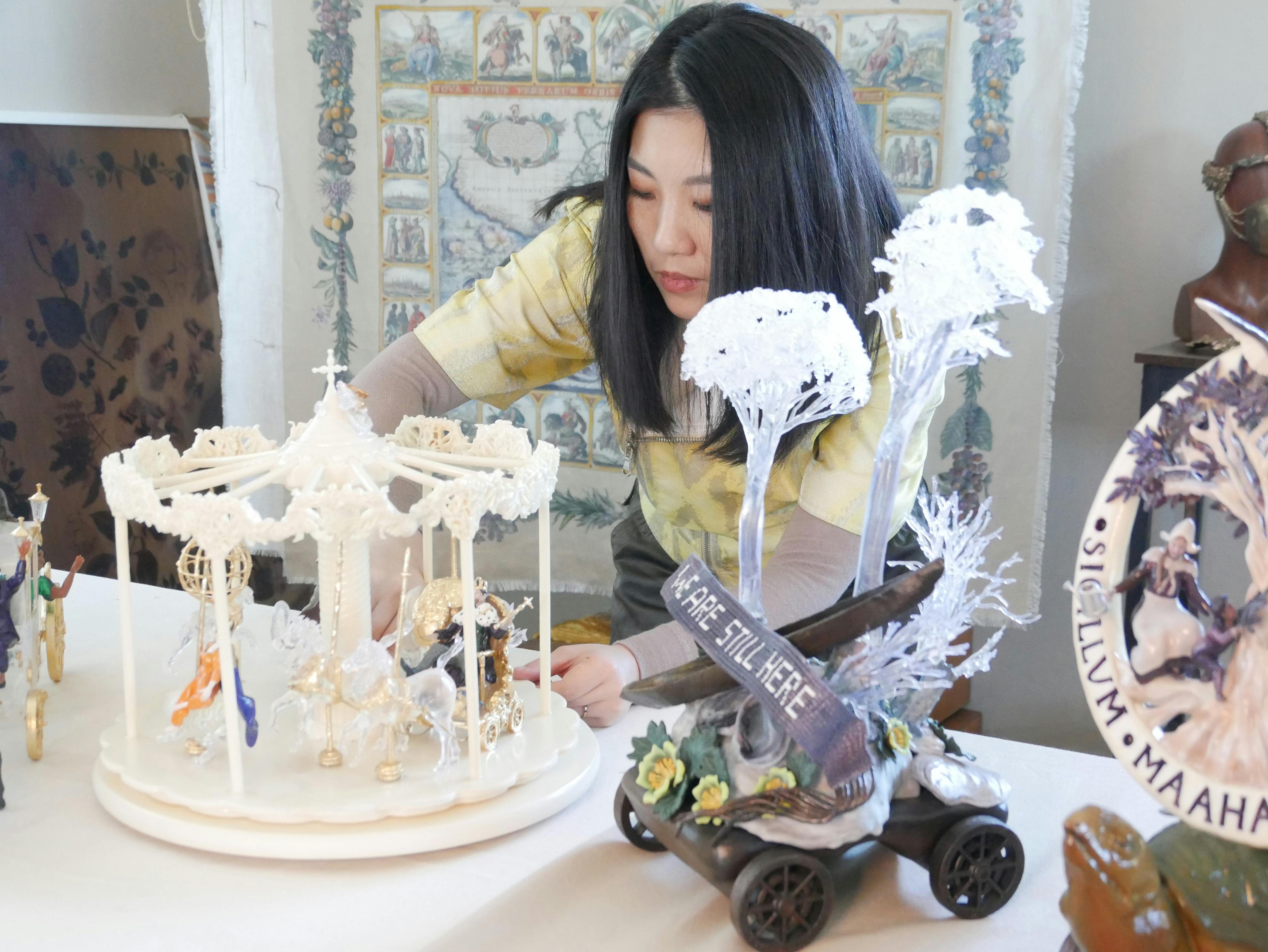 Drawing on research into New-York Historical’s vast Museum and Library collections, artist-in-residence Beatrice Glow reckons with the 400th anniversary of the establishment of the Dutch colony of New Amsterdam from local and global perspectives. Working in conversation with a group of culture bearers, artists, and scholars whose heritages were impacted by the Dutch colonial enterprise, Glow is creating a series of seven parade float maquettes that envision an alternative commemoration. The small VR-sculpted and 3D-printed sculptures will be complemented by Glow’s interpretations of decorative arts collection objects, such as embroidered textiles and gilded baby rattles that reflect ideas of social and cultural power. Organized by Rebecca Klassen, curator of material culture