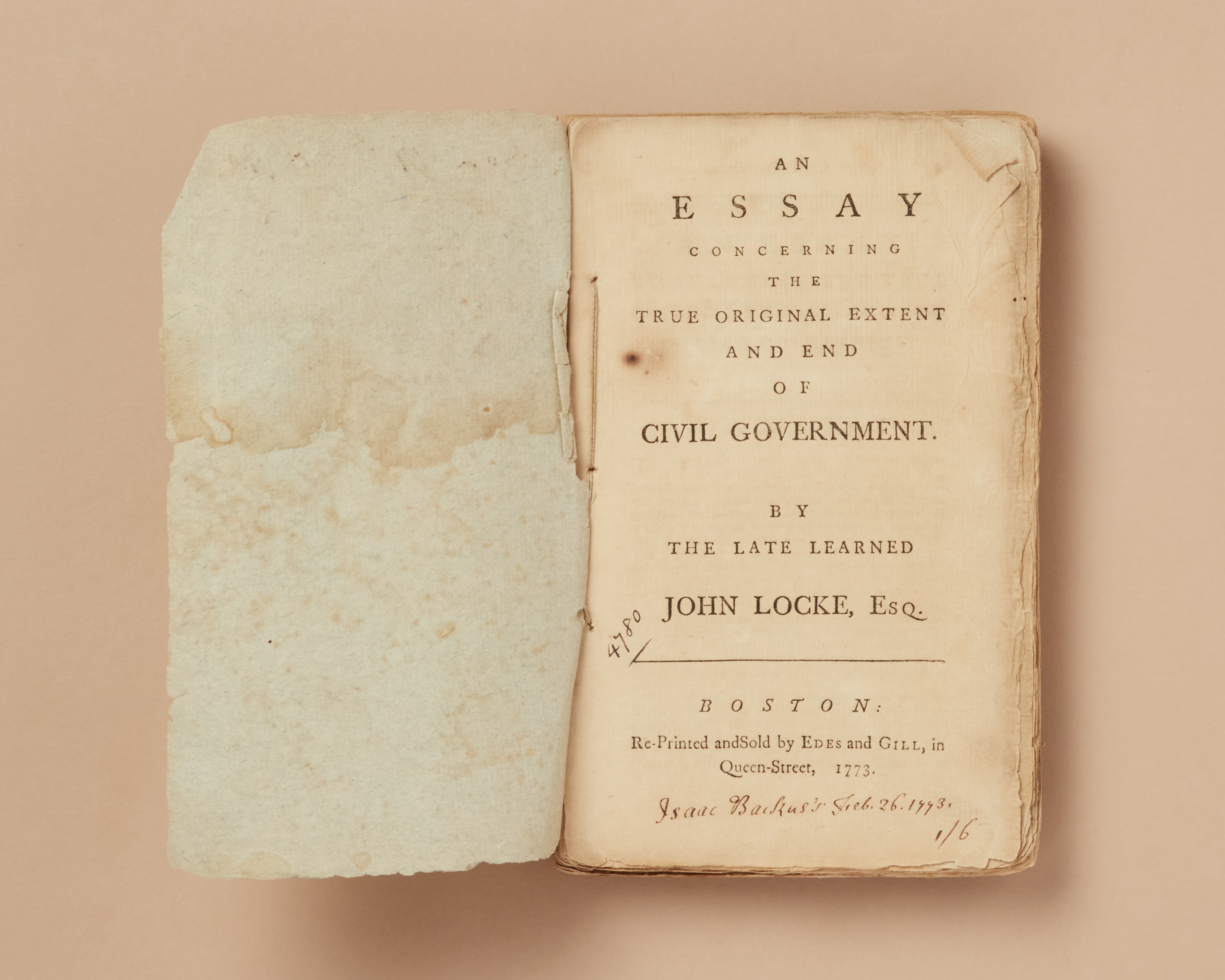 ![John Locke, [Second Treatise on Government] An Essay Concerning the True Original Extent and End of Civil Government (Boston: Edes and Gill, 1773). Photograph by Vincent Dilio. Courtesy of David M. Rubenstein.](https://d17xep5pb0e8k3.cloudfront.net/aJSuyqTt2nPbZ9p4_24-03182025_an_essay_concerning_civil_government_locke_boston_1773_B_325a.jpg?auto=format,compress&w=2000&h=1600&q=80)
