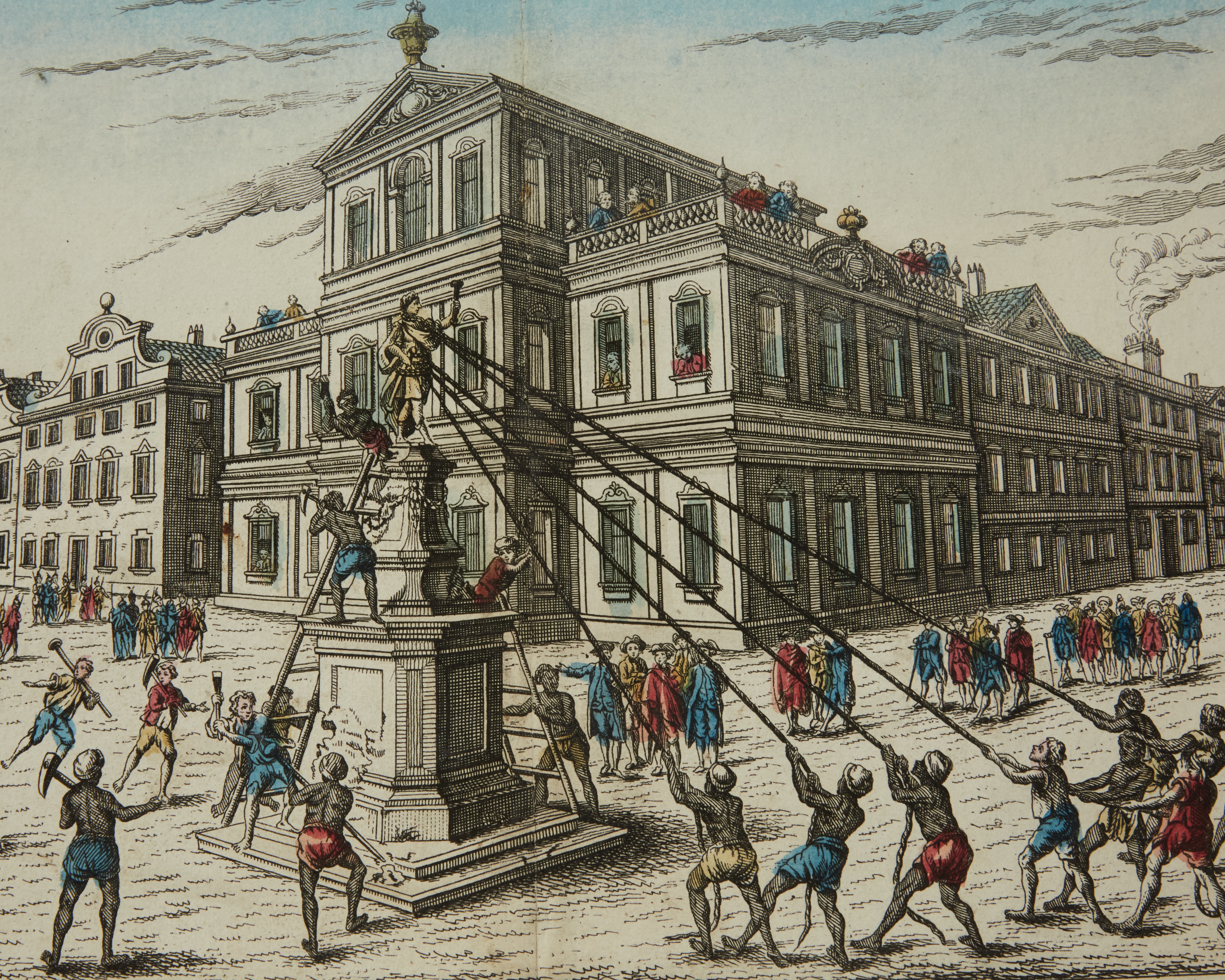 ![La Destruction de la Statue Royale a Nouvelle Yorck (Paris: [after François Xavier Habermann], 1776). Photograph by Vincent Dilio. Courtesy of David M. Rubenstein.](https://d17xep5pb0e8k3.cloudfront.net/aJSxQaTt2nPbZ9sE_04162025_destruction_of_royal_statue_in_new_york_paris_1776_F_004a.jpg?auto=format,compress&w=2000&h=1600&q=80)