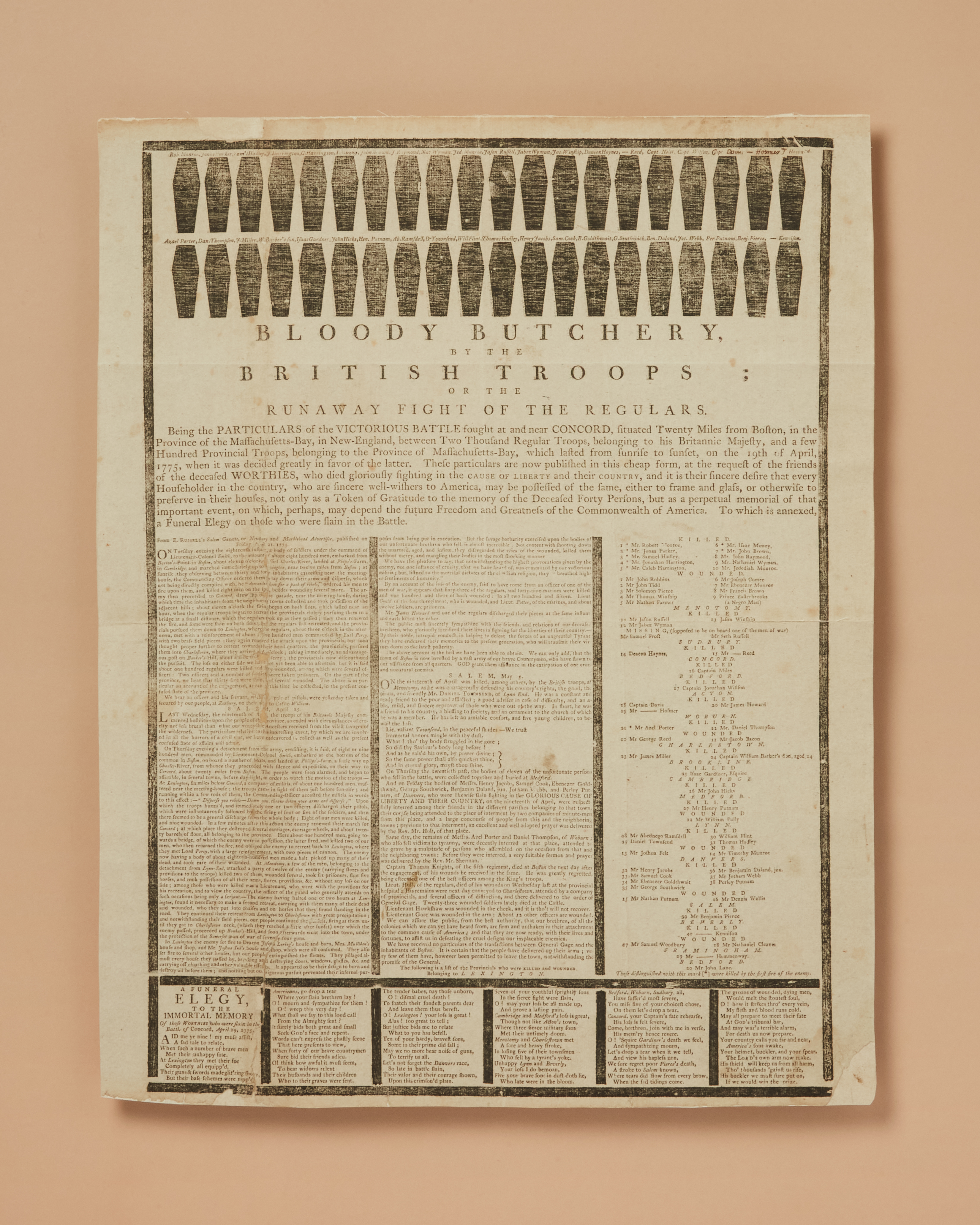 ![Bloody Butchery by the British Troops, Or, the Runaway Fight of the Regulars [. . .] (Salem: Russell, 1775). Photograph by Vincent Dilio. Courtesy of David M. Rubenstein.](https://d17xep5pb0e8k3.cloudfront.net/aJUJHqTt2nPbZ-tS_10-04282025_bloody_butchery_by_the_british_troops_russell_1775_F_132.jpg?auto=format,compress&w=2000&h=2500&q=80)
