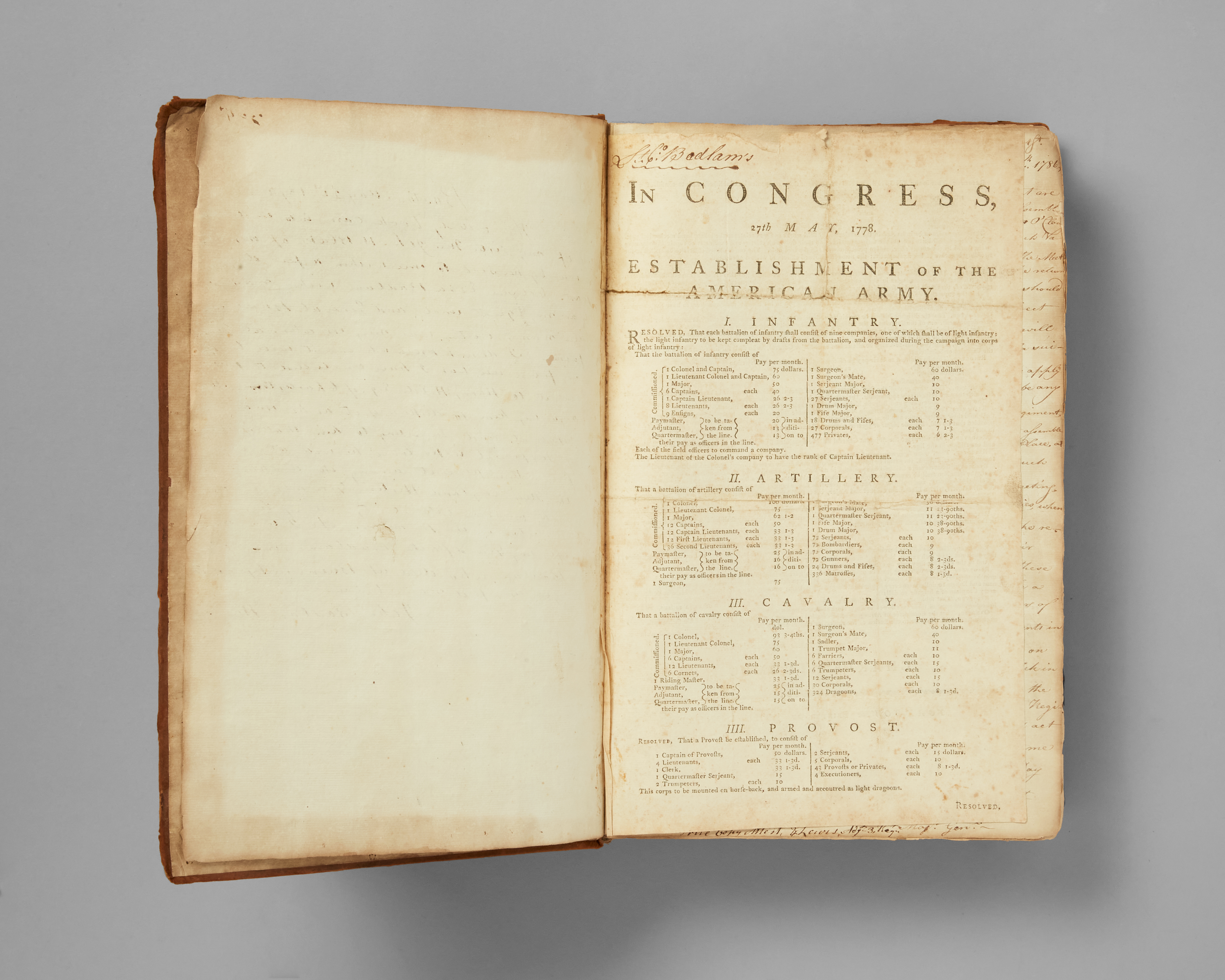 ![In Congress, 17th May, 1778. Establishment of the American Army. (York [PA]: Dunlap, 1778). Photograph by Vincent Dilio. Courtesy of David M. Rubenstein.](/_next/image?url=https%3A%2F%2Fd17xep5pb0e8k3.cloudfront.net%2FaJUJqaTt2nPbZ-ur_12-04102025_congress_establishment_of_the_american_army_1778_E_316b.jpeg%3Fauto%3Dformat%2Ccompress%26w%3D2000%26h%3D1600%26q%3D80&w=1200&q=75)