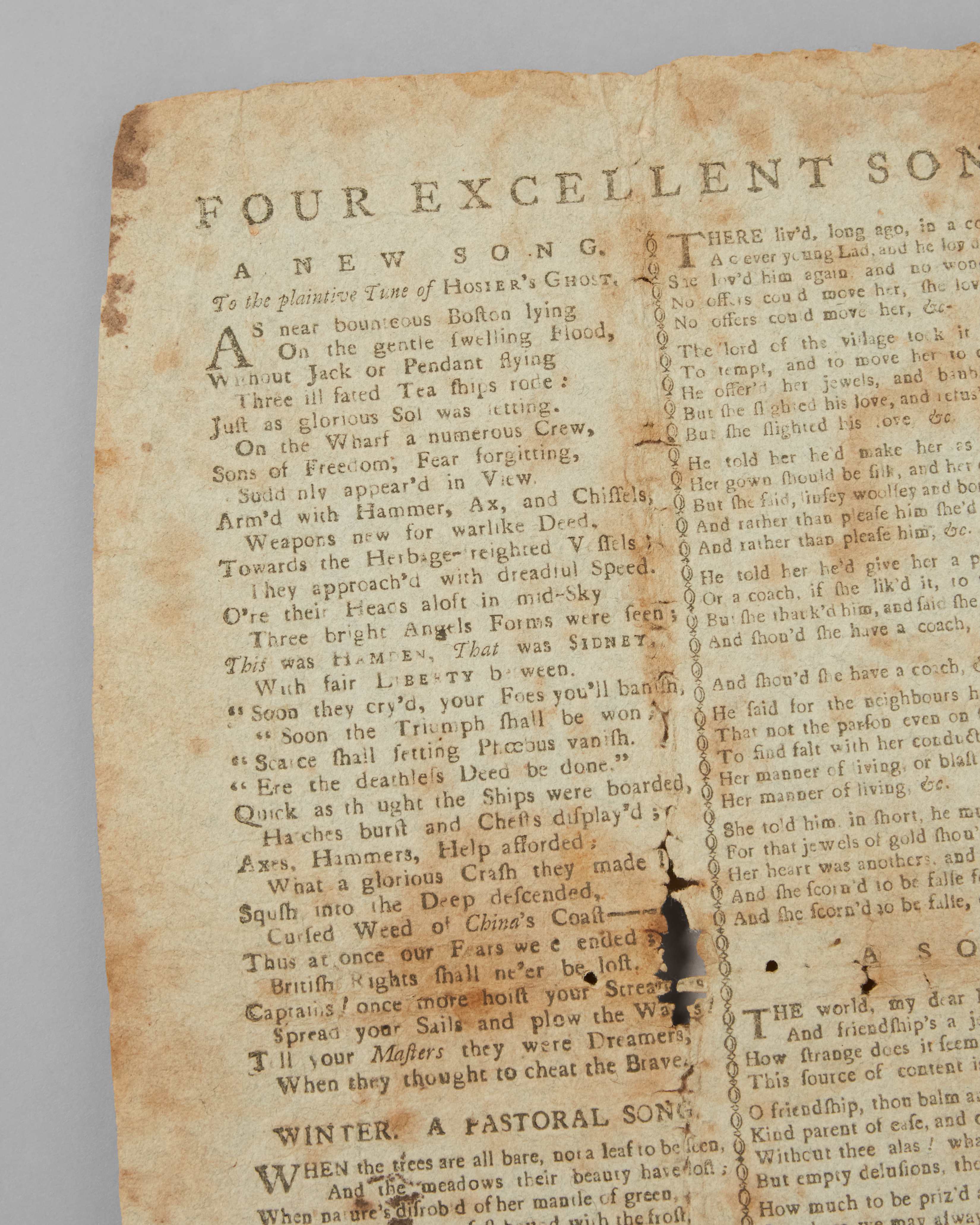 ![Four Excellent Songs. A New Song. To the Plaintive Tune of Hosier's Ghost (Norwich: Spooner, 1774). [Detail] Photograph by Vincent Dilio. Courtesy of David M. Rubenstein.](/_next/image?url=https%3A%2F%2Fd17xep5pb0e8k3.cloudfront.net%2FaKddfqTt2nPballf_08-06092025_four_excellent_songs_norwich_1774_D_067b.jpg%3Fauto%3Dformat%2Ccompress%26w%3D2000%26h%3D2500%26q%3D80&w=1200&q=75)