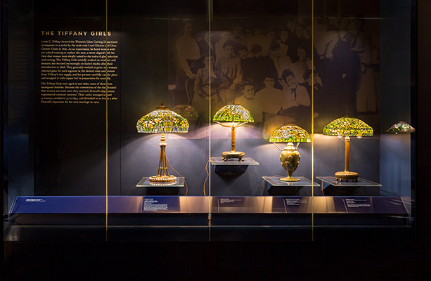 Interactive elements in the gallery include a hands-on “Design-a-Lamp” experience and a diorama that illustrates the rise of electrification. Kiosks share personal stories of the individual Tiffany Girls, including dramatic readings from Clara Driscoll’s letters as well as sources of their design inspiration and details on the manufacturing process.