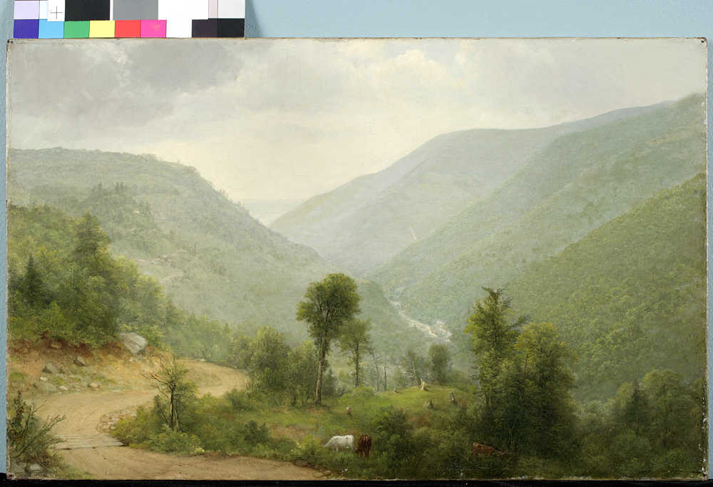 The Hudson River School rose to eminence in New York during the first half of the 19th century. This loosely knit group of artists, together with like-minded poets and writers, forged a self-consciously “American” landscape vision and literary voice. Both were grounded in the exploration of the natural world as a resource for spiritual renewal and as an expression of cultural and national identity. The Hudson River and the varied scenery along its banks, along with the Catskill, Adirondack and White Mountains and beyond, provided the subjects for many of their landscape paintings.