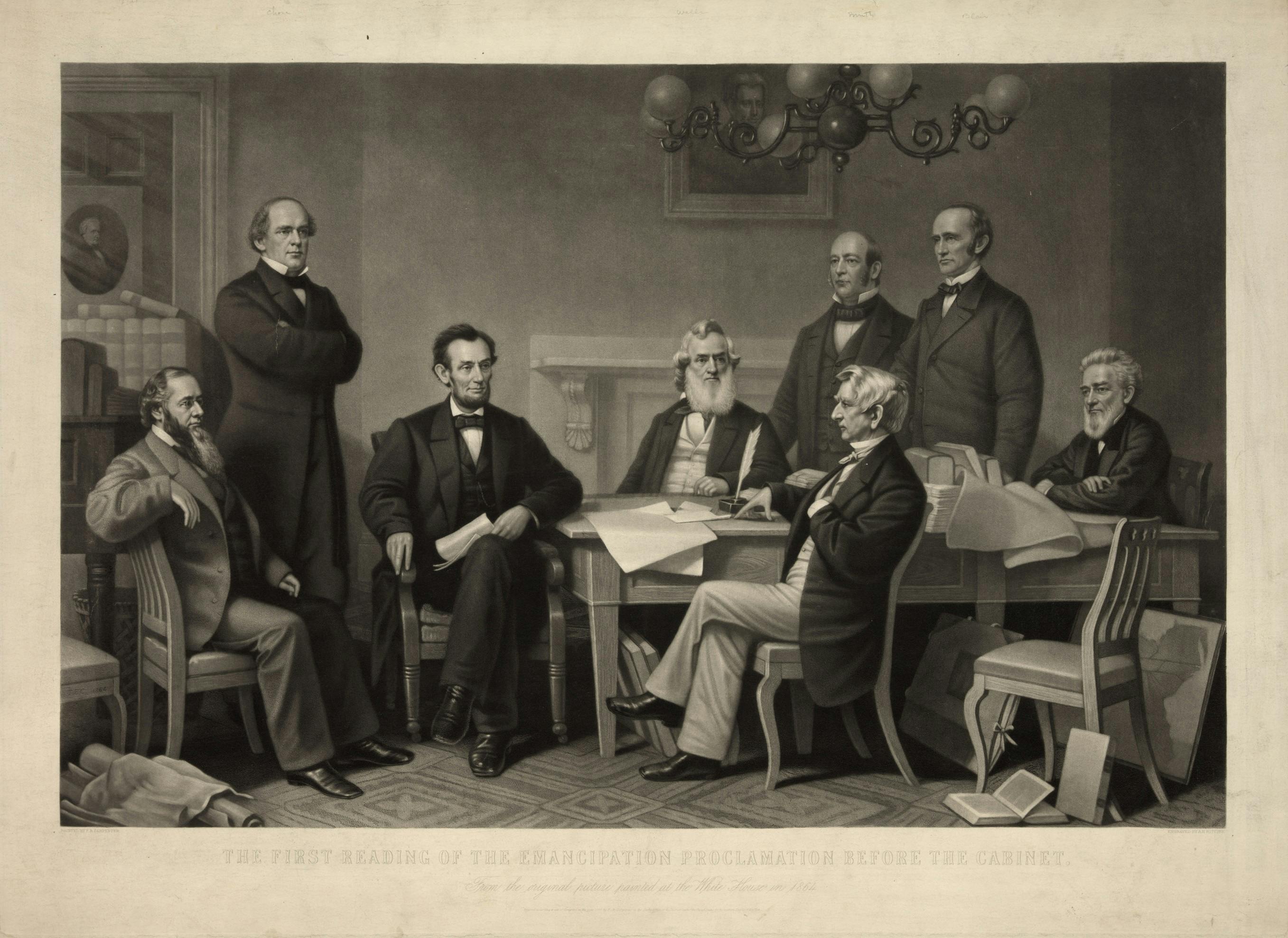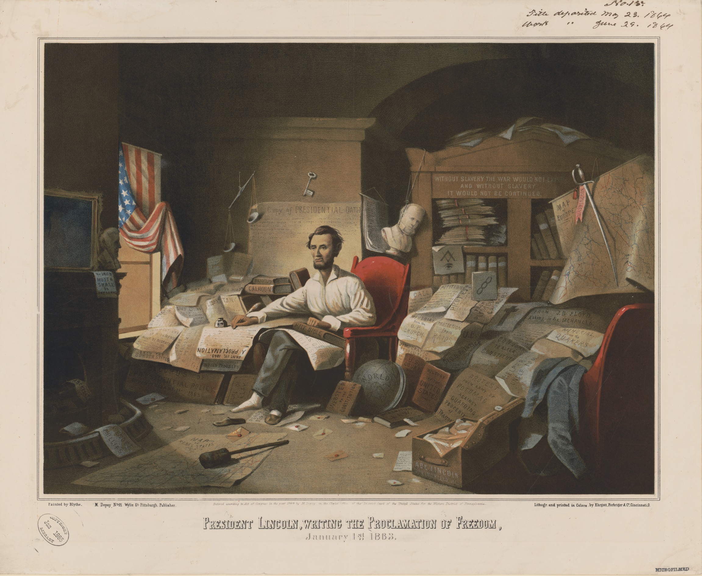 But Lincoln faced great pressure to end slavery. It came from abolitionist members of his own party in Congress, from many Northern newspapers, and from prominent abolitionists like Frederick Douglass. It came from the actions of contrabands, who escaped from slavery and sought refuge behind Union lines. Their presence raised unanswered questions about their legal status, their role in the war, and their future. And then there was the reality of the war. The Union was not winning, largely because the South’s over three million enslaved people kept plantations and farms going. On the battlefields, they served as cooks, tended the wounded, built defenses. Lincoln concluded that because enslaved laborers gave the South a military advantage, he could free them under his constitutional power as commander in chief.