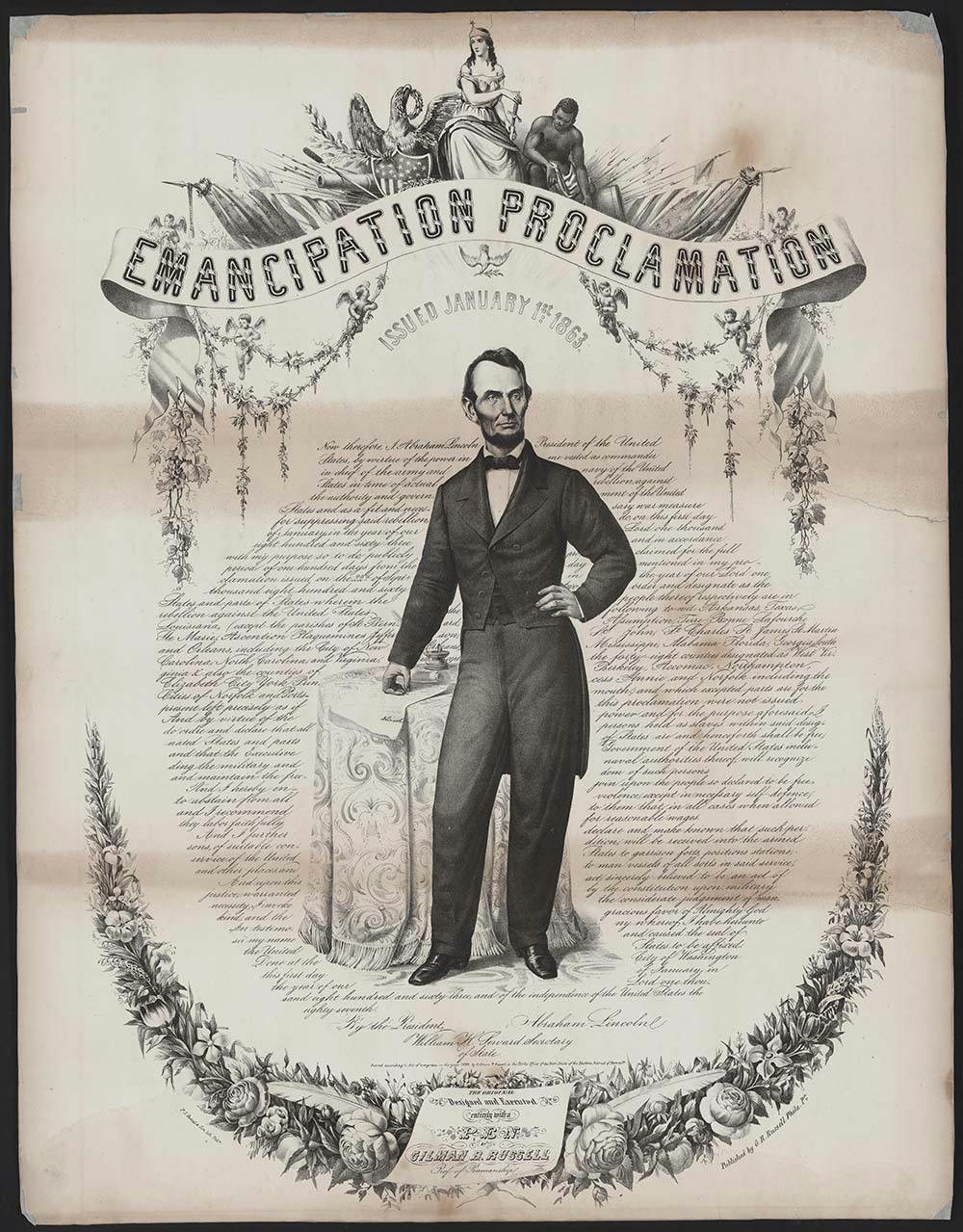 After the war and Lincoln’s shocking death, many viewed him as a martyr to the cause of freedom, something close to a god. He was called the Great Emancipator. Lithographs portrayed him heroically, often with patriotic symbols and the language of the Emancipation Proclamation scrolled around him. In the decades after his death, American historians have worked to move beyond the myth—to understand Lincoln’s evolving position on slavery and the many factors that contributed to its end. This process will continue. Historians are constantly searching for undiscovered clues, reading evidence in new ways, responding to current events that help shed light on the past. In the story of emancipation especially, this process has led to a greater understanding of the role played by Black Americans. As contrabands, they forced the nation to address the meaning of freedom, and as soldiers in uniform, they helped to achieve it.