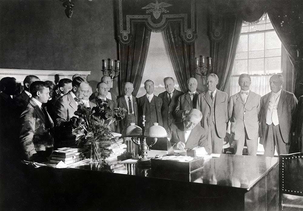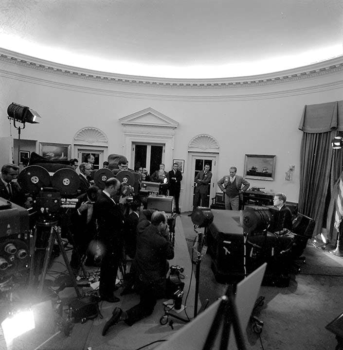 The White House Oval Office, created in 1909, is both a ceremonial space and a working office. Presidents host world leaders and dignitaries there, as well as hold private meetings. They also address the public, sign bills into law, hear policy briefings, and conduct daily business from this symbolic room. Scroll through a slide show of presidents at work in the Oval Office.